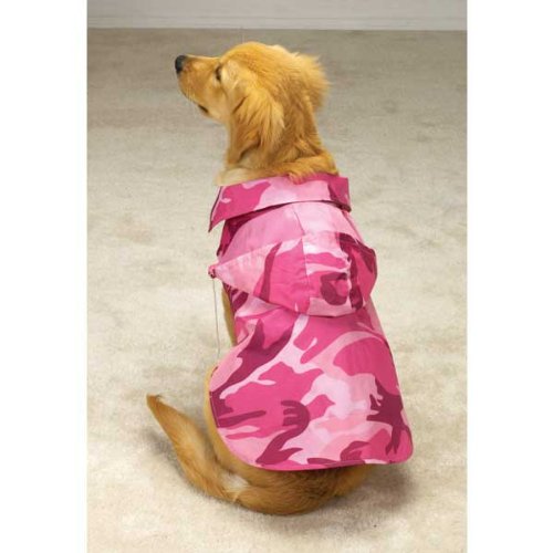 When it?s wet outside, our Casual Canine? Camo Jackets keep dogs dry, warm, and looking oh so fashionable. Reversible design goes from camo print to solid for style versatility. Removable hood snaps on to keep dog?s head dry, and snaps off to reveal a turndown collar. Velcro? fasteners at chest and belly ensure a comfortable fit. Comes packaged on a hanger for easy retail display.