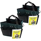 2-pack Mini Garden Tote Canvas Bags with Four Pockets - Use As an Organizer Tote Bag, School or Office Supply Organizer Bag, Pet Grooming Supplies Organizer Tote, Etc - Green-on-black or Black-on-green - 7"x8"x4" Feature