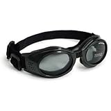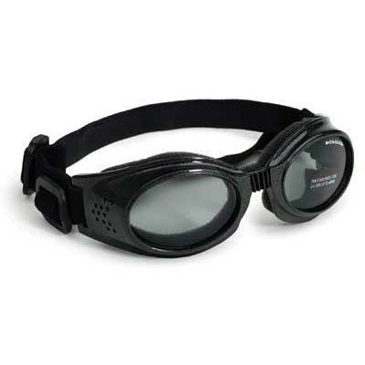 Originalz Small Black Frame / Smoke Lenses - 12 years of experience has made Doggles the very best in pet eyewear. - For eye protection or fashion, ask for it by name. Dogs need UV protection just as humans do, and if your dog is out and about with you, and you have your sunglasses on, your dog should be wearing Doggles to protect its eyes from harmful UV rays as well. Your dog can't tell you his eyes hurt. Be proactive and help your dog help its own eyes. Doggles are worn by working dogs all over the world: K9 Units, Border Patrol dogs, Search and Rescue, are just some of them. Doggles are recommended by Vet Ophthalmologists to protect their patients in all types of situations and also after some types of eye surgery. Features: Extra wide nose bridge Deep lens cup Padded and flexible rubber frame Soft elastic adjustable head and chin straps 100% UV protection Anti-fog Shatterproof SIZE CHART Extra Small